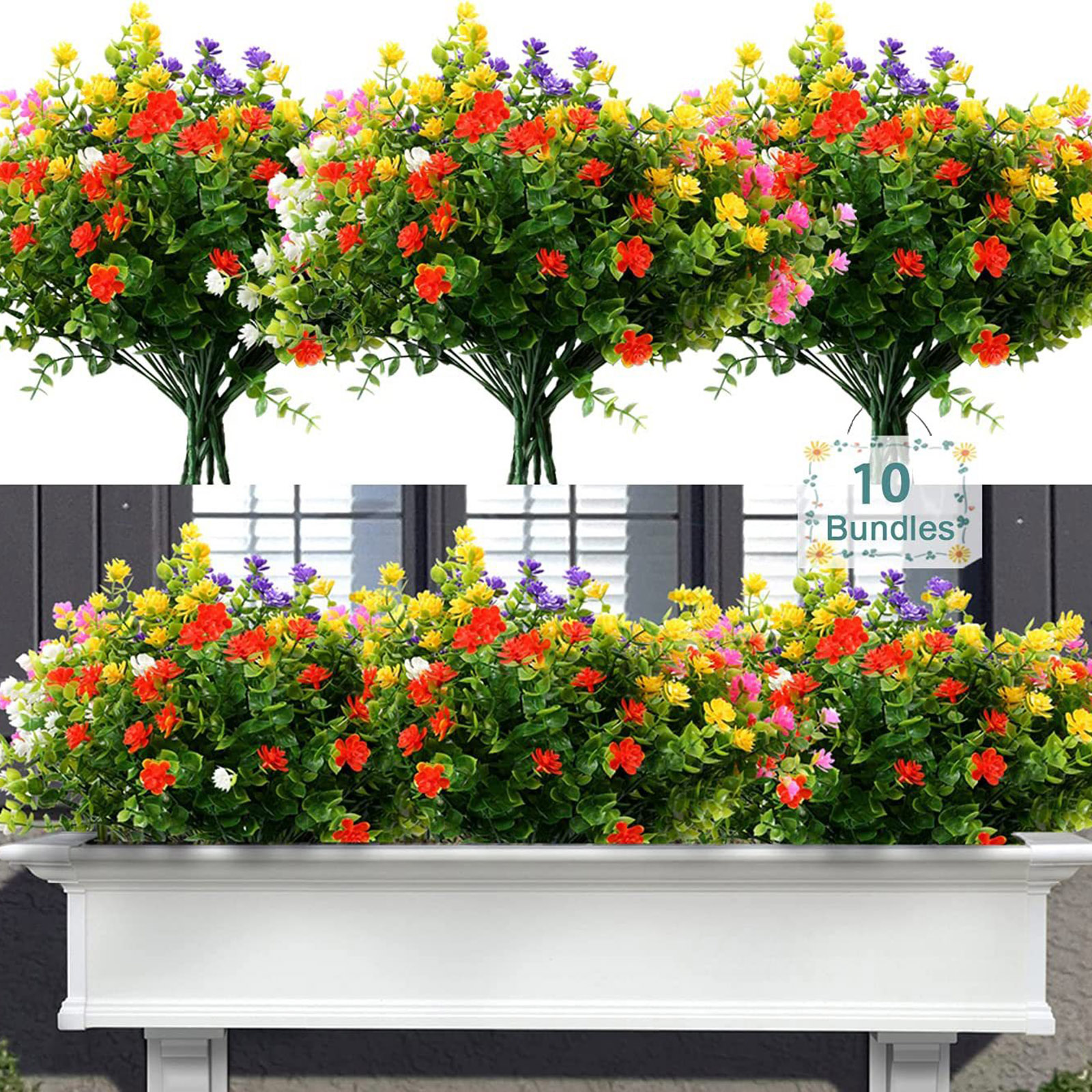 Elevate your outdoor space with our UV-resistant artificial outdoor flowers—the ultimate solution for year-round, maintenance-free beauty that thrives in sun, rain, and wind. Designed to mimic the lush vibrancy of real blooms, these faux flowers eliminate the hassle of watering, pruning, or seasonal replacement, keeping your garden, patio, or porch stunning 365 days a year. Each bundle features a dense, realistic arrangement of lifelike blooms and lush green foliage, designed to look indistinguishable from fresh flowers at a glance. Available in a stunning array of colors—rich purple, bright orange, crisp white, vibrant pink, sunny yellow, and mixed multicolor—you can mix and match to create custom displays that complement your home’s exterior, patio furniture, or garden decor. The flexible, bendable stems make it easy to shape and arrange the flowers to fit any outdoor planter, window box, hanging basket, or garden bed, creating a full, overflowing look that elevates any space.